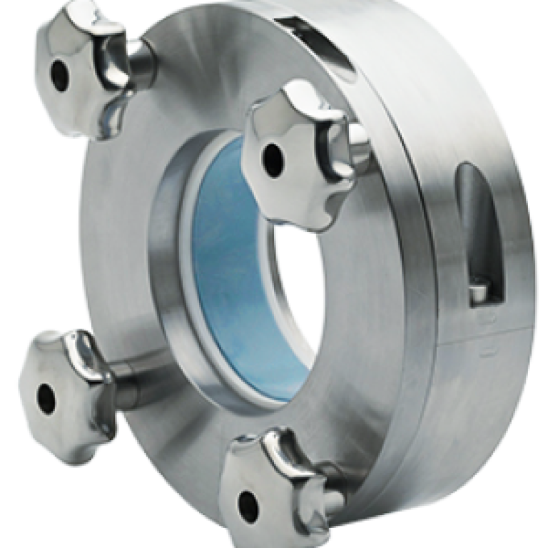 Les flasques en PTFE, également démontables compressent le joint, et assurent l'étanchéité entre le boîtier et le système d'étanchéité.